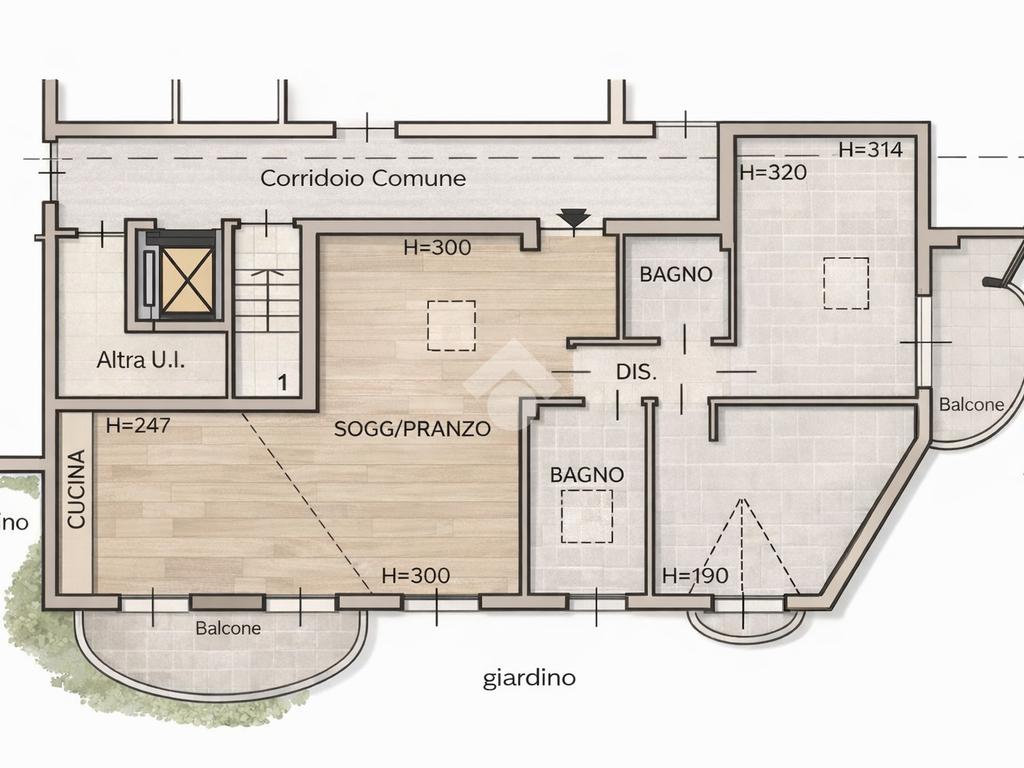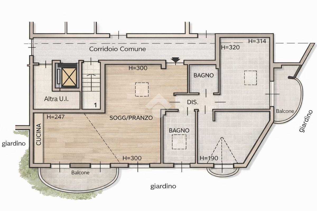 La presenza di tre comodi balconi garantisce ottima luminosità e sfoghi esterni funzionali.